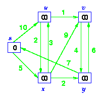 Initial graph All nodes have infinite cost except the source |