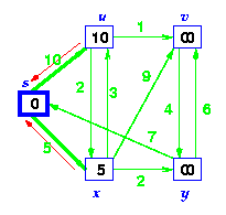 u is now closest, choose it and adjust its neighbour, v. |