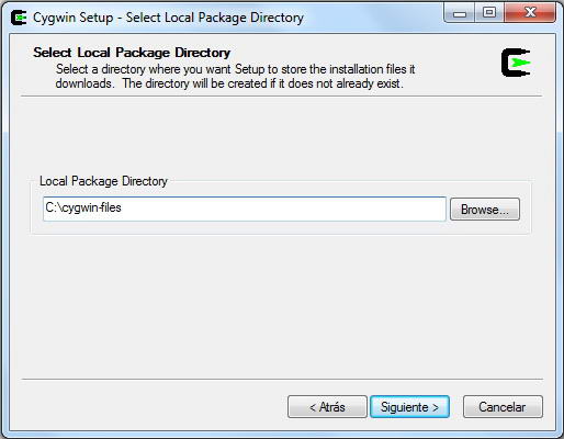 carpeta local, por ejemplo, C:/cygwin-files/.
