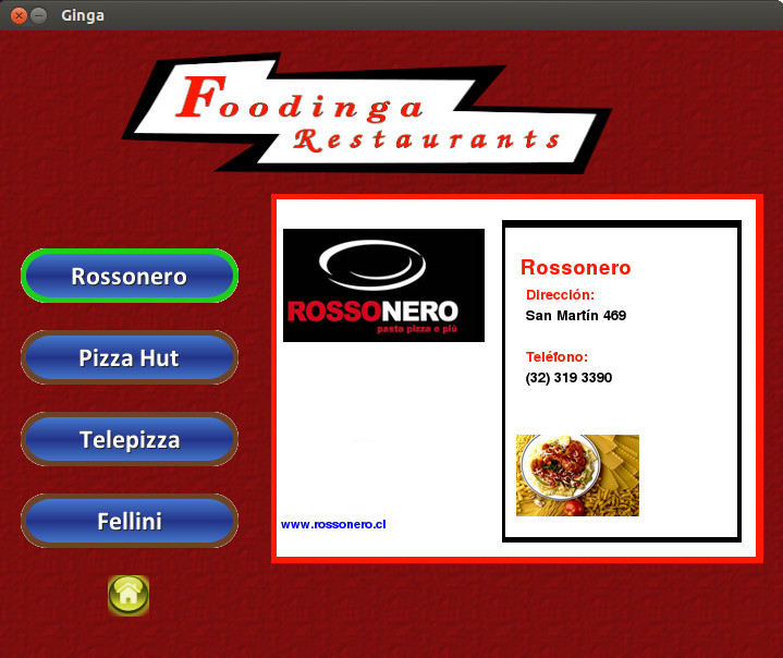 Una vez que se encuentre dentro de un tipo de restaurant, el usuario podrá ver una lista de locales disponibles, pudiendo navegar entre ellos con las flechas arriba y abajo del control. Además de ello, se despliega un mapa por cada restaurant, así podrá conocer su ubicación.