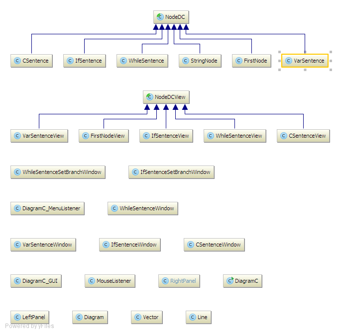 El diagrama que se dibuja en el panel derecho, se almacena en una clase iterable, esto significa que para recorrer el esquema solo se necesita iterar por un bucle “for each”, con lo que resulta natural imprimir un código C en un archivo externo.