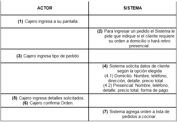 -Cajero: quién está encargado de realizar la lista de pedidos con los datos de los clientes.