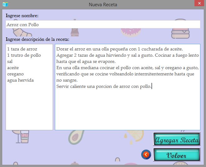 4 Se completan los campos de ingredientes y procedimiento, haciendo click en Agregar Receta.