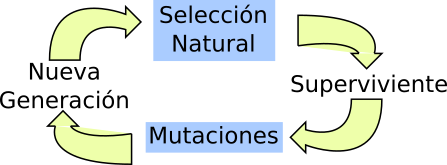 Un algoritmo genético es un método heurístico inspirado por el proceso de selección natural, y utlizado comunmente en la generación de soluciones de alta calidad a problemas de optimización y busqueda. En el caso del presente trabajo, es utilizado un modelo genético como el mostrado en la Figura 2. En él, un individuo (superviviente) genera un descendiente (nueva generación) afectado por mutaciones. Luego, el individuo que sobrevivirá será aquel que presente un menor error de aproximación, abriendo la posibilidad de ejecutar una nueva iteración.