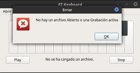 En la parte inferior, se tienen los botones Play y Stop. Estos arrojan un mensaje de error (excepción) si intenta reproducir y parar cuando no hay nada abierto o grabando.