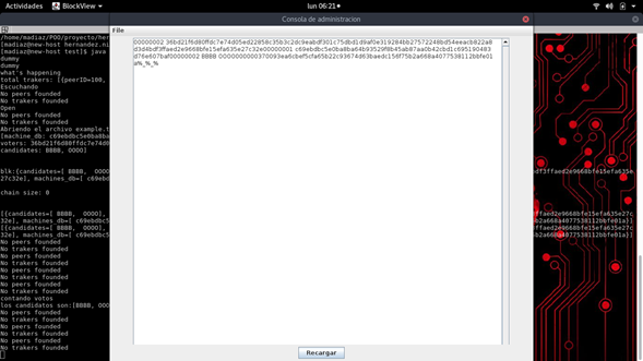 Se inicia el Tracker génesis al cual se le conecta otro Tracker, se puede observar que "Trackers en la red" dice 2.