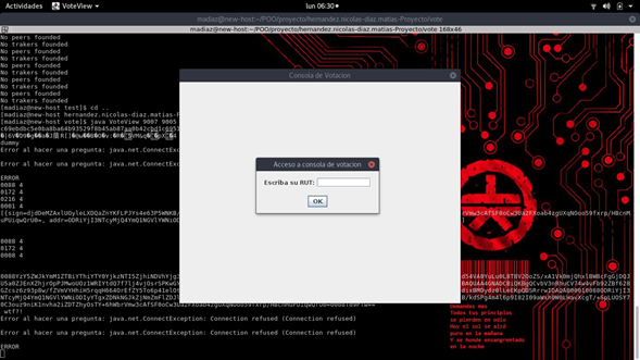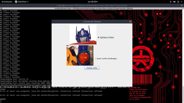 La consola de votación primero pregunta por el RUT, una vez ingresado muestra las opciones por las cuales votar. Hecho el voto hace un push de el al worker que se le fue asignado.