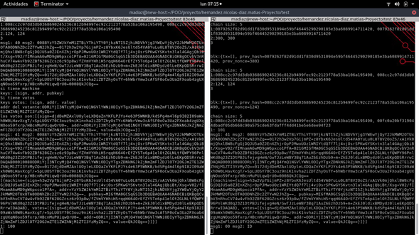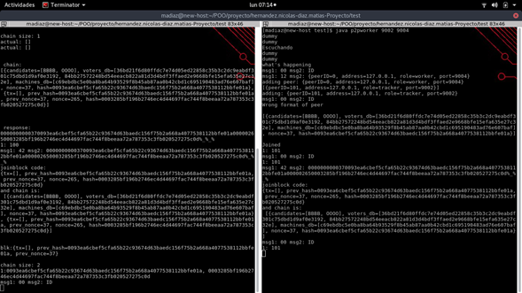 En esta imagen vemos a los 2 Workers, se observa que el de la derecha está generando el próximo Bloque.