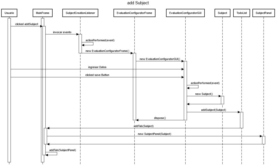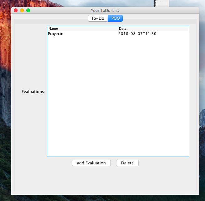 | Agrega la evaluacion a la lista en la pestaña del curso y, si la evaluación es la próxima evaluación del curso, agrega la evaluación a la lista en la pestaña “to-do” |
