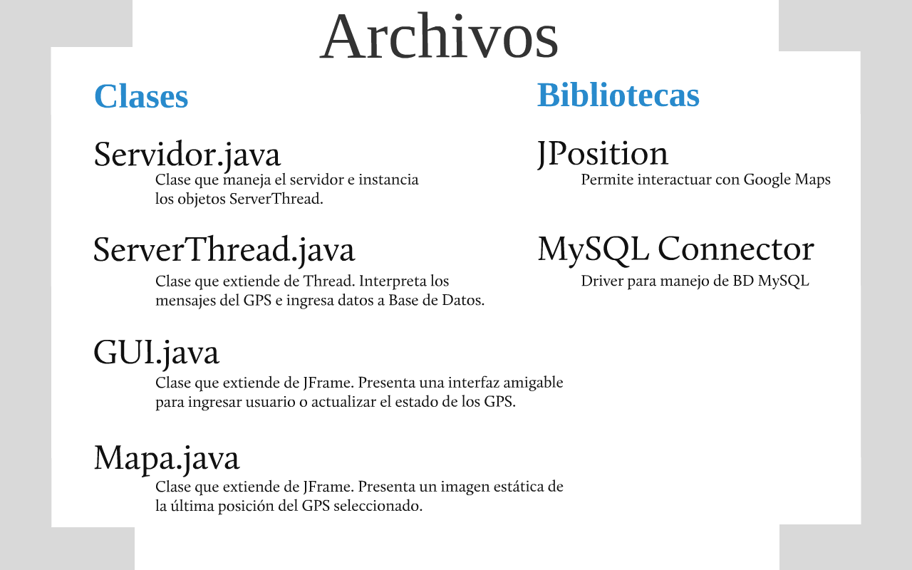 posicionamiento global, las cuales comunica a un Servidor TCP